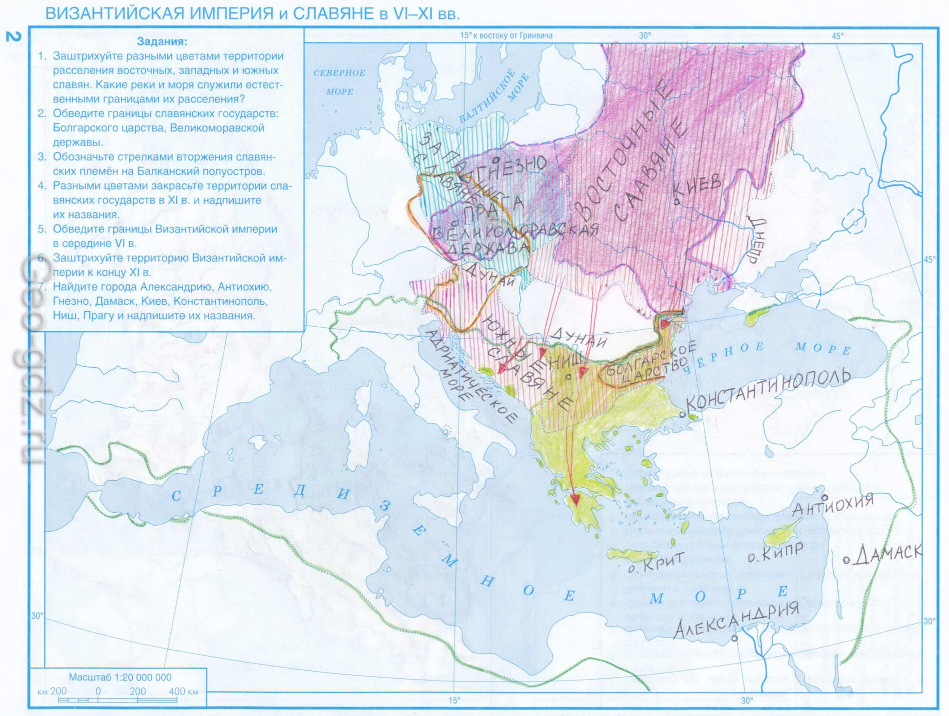 Византийская империя и славяне в 6 - 9 веках - гдз контурная карта