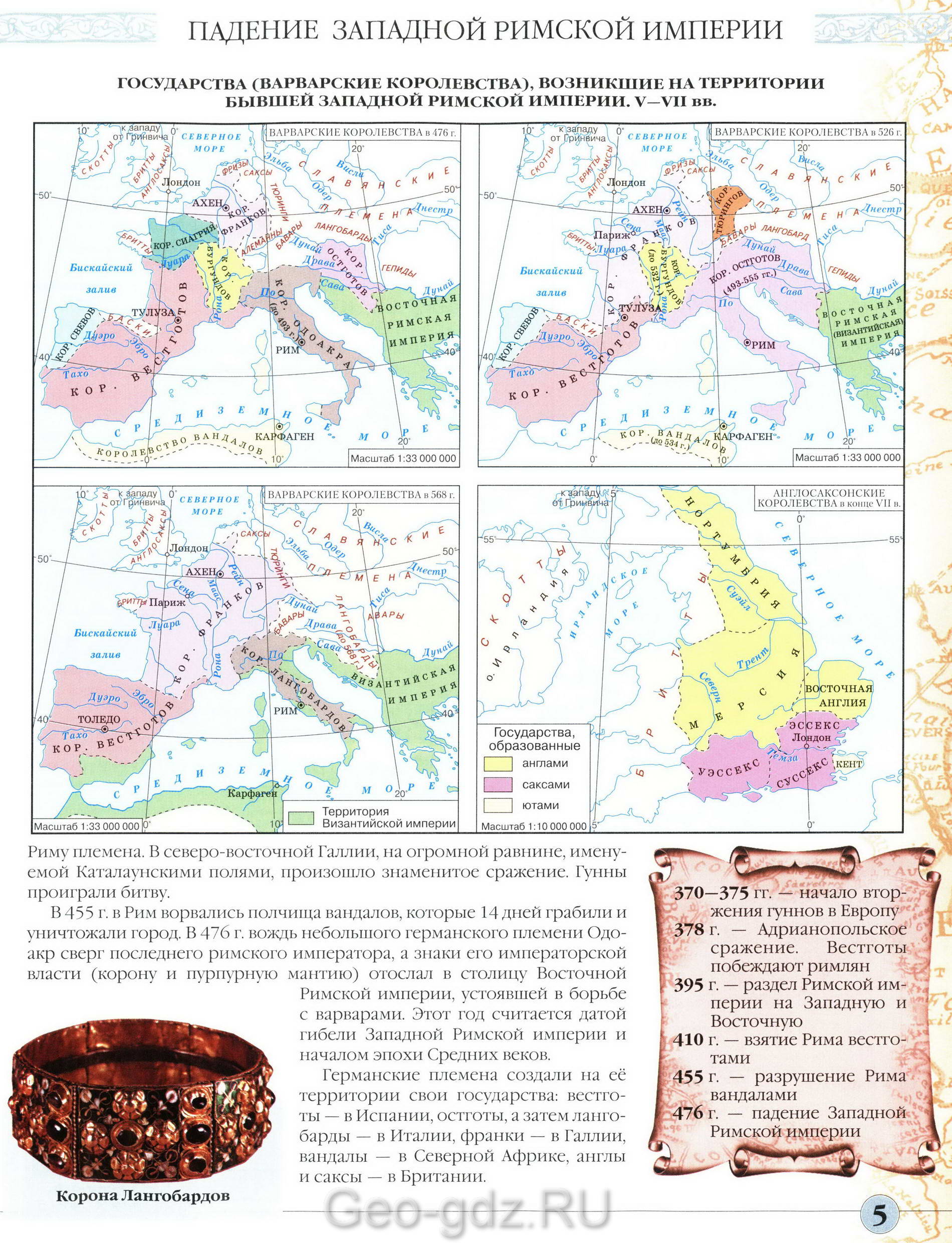 Падение Западной Римской империи - карта по истории, 6 класс Дрофа