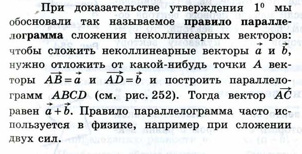 Правило параллелограмма сложения двух неколлинеарных векторов
