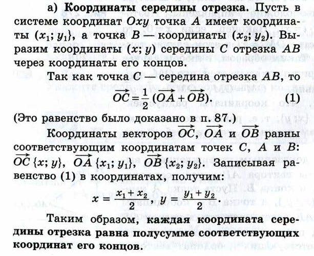 Формулы для вычисления координат середины отрезка по координатам его концов - Решебник