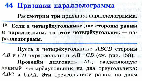 Сформулируйте и докажите утверждения о признаках параллелограмма
