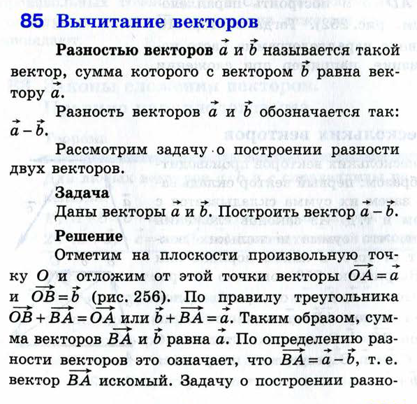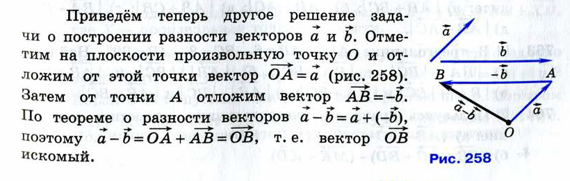 Какой вектор называется разностью двух векторов? Постройте разность двух данных векторов.