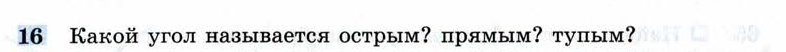 Вопрос 16: Какой угол называется острым? прямым? тупым?