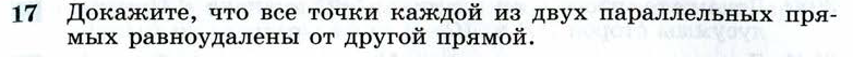 Вопрос 17: Докажите, что все точки каждой из двух параллельных прямых равноудалены от другой прямой.