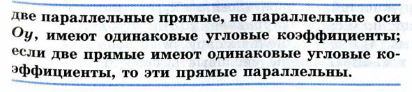 Две параллельные прямые, не параллельные оси Oy, имеют одинаковые угловые коэффициенты
