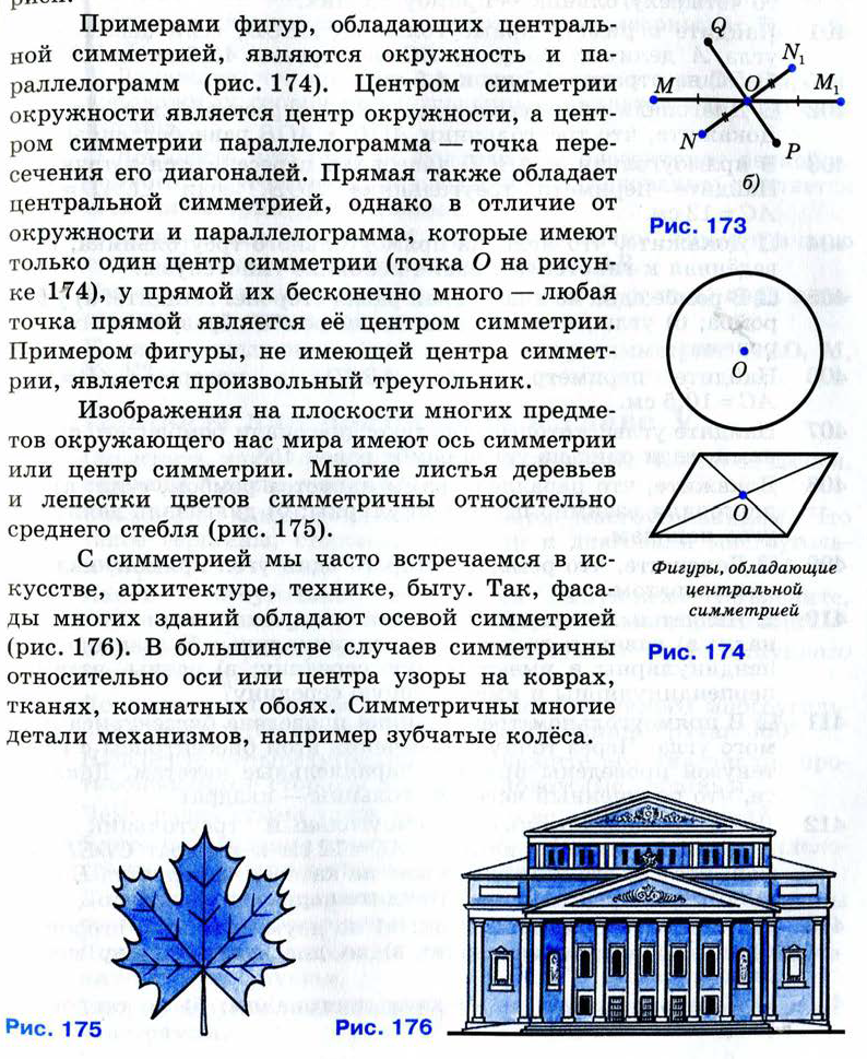 Приведите примеры фигур, обладающих: а) осевой симметрией; б) центральной симметрией; в) и осевой, и центральной симметрией.