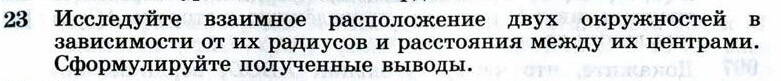Исследуйте взаимное расположение двух окружностей в зависимости от их радиусов и расстояния между их центрами. Сформулируйте полученные выводы.