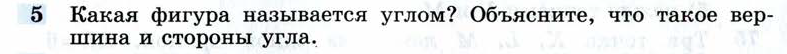 Вопрос 5: Какая фигура называется углом? Объясните, что такое вершина и стороны угла.