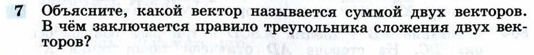 Объясните, какой вектор называется суммой двух векторов. В чём заключается правило треугольника сложения двух векторов?
